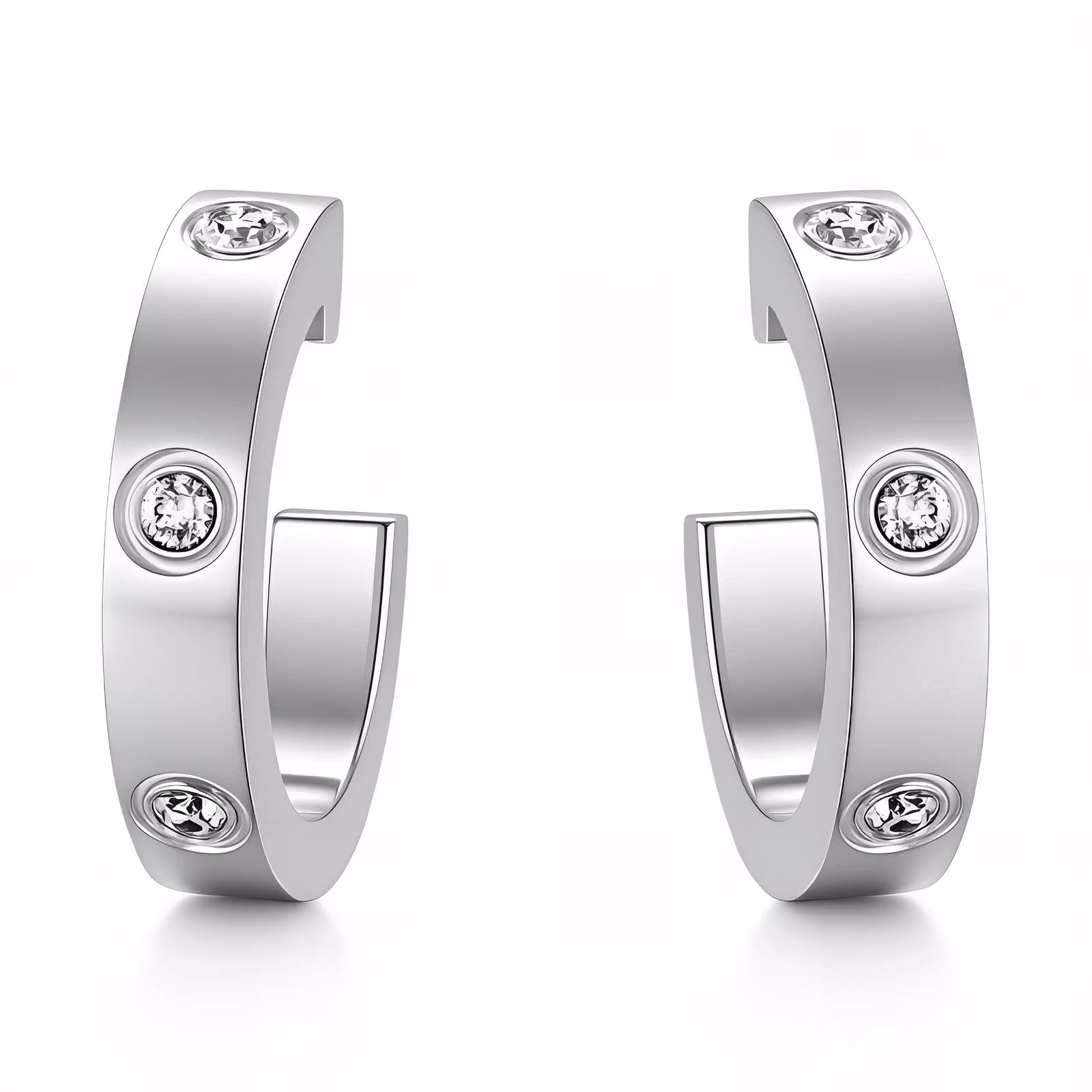 Stilrena creoler med gnistrande stenar som med sin trendiga och unika design passar perfekt för alla tillfällen. Dessa vackra örhängen blir dina nya favoriter eller den perfekta gåvan. Smycket levereras i en snygg ask som är perfekt till förvaring.
