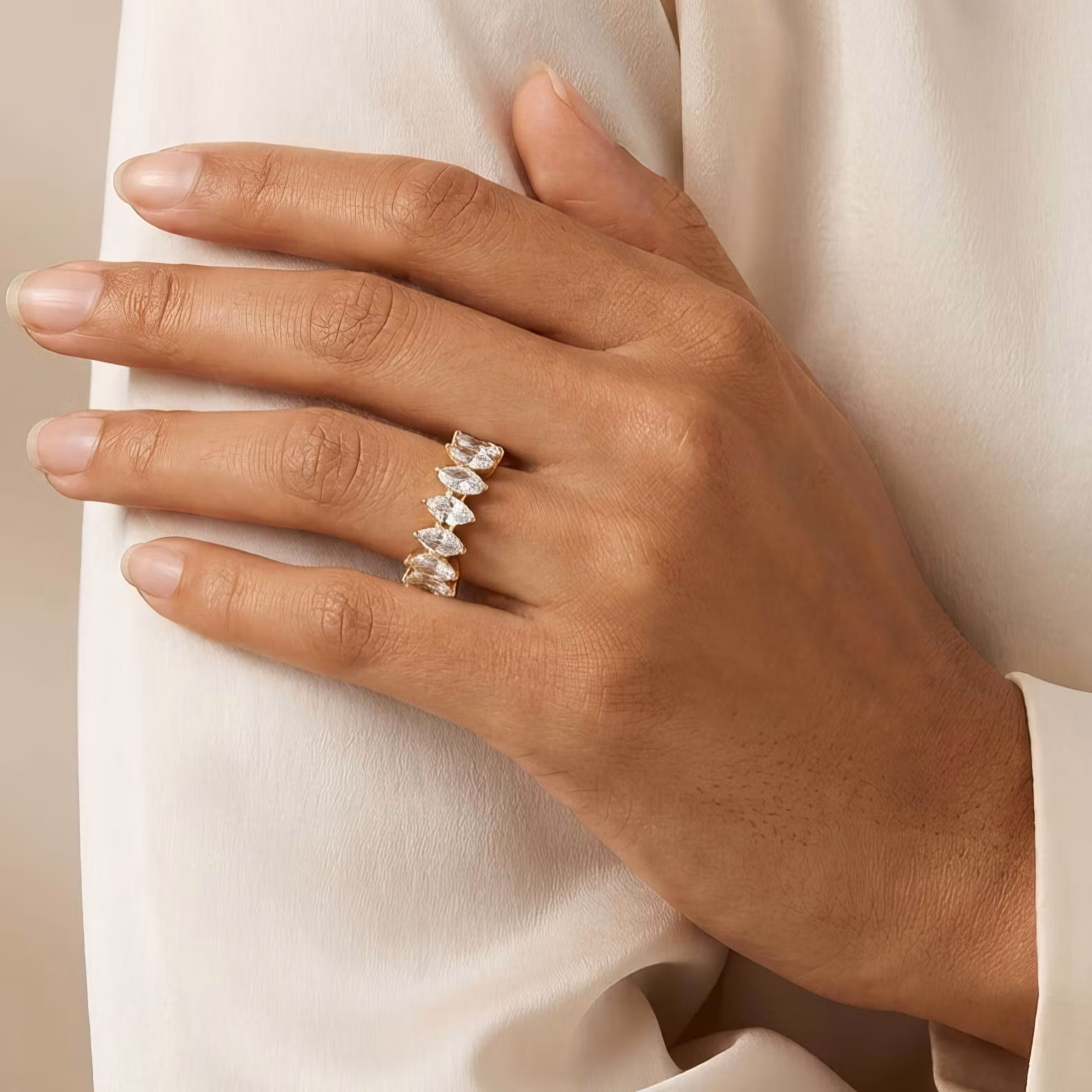 Stilren ring med gnistrande cz-stenar som med sin trendiga och unika design passar perfekt för alla tillfällen. Denna vackra ring blir din nya favorit eller den perfekta gåvan. Smycket levereras i en snygg ask som är perfekt till förvaring.