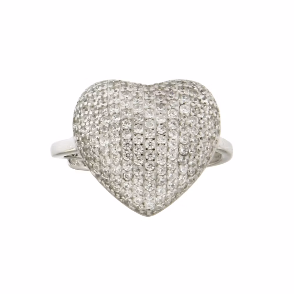 Vacker hjärtring med gnistrande cz-stenar i återvunnet 925 rhodinerat silver av stilren och trendig design som passar för alla tillfällen.Mått hjärta: 16 mmJusterbar storlek