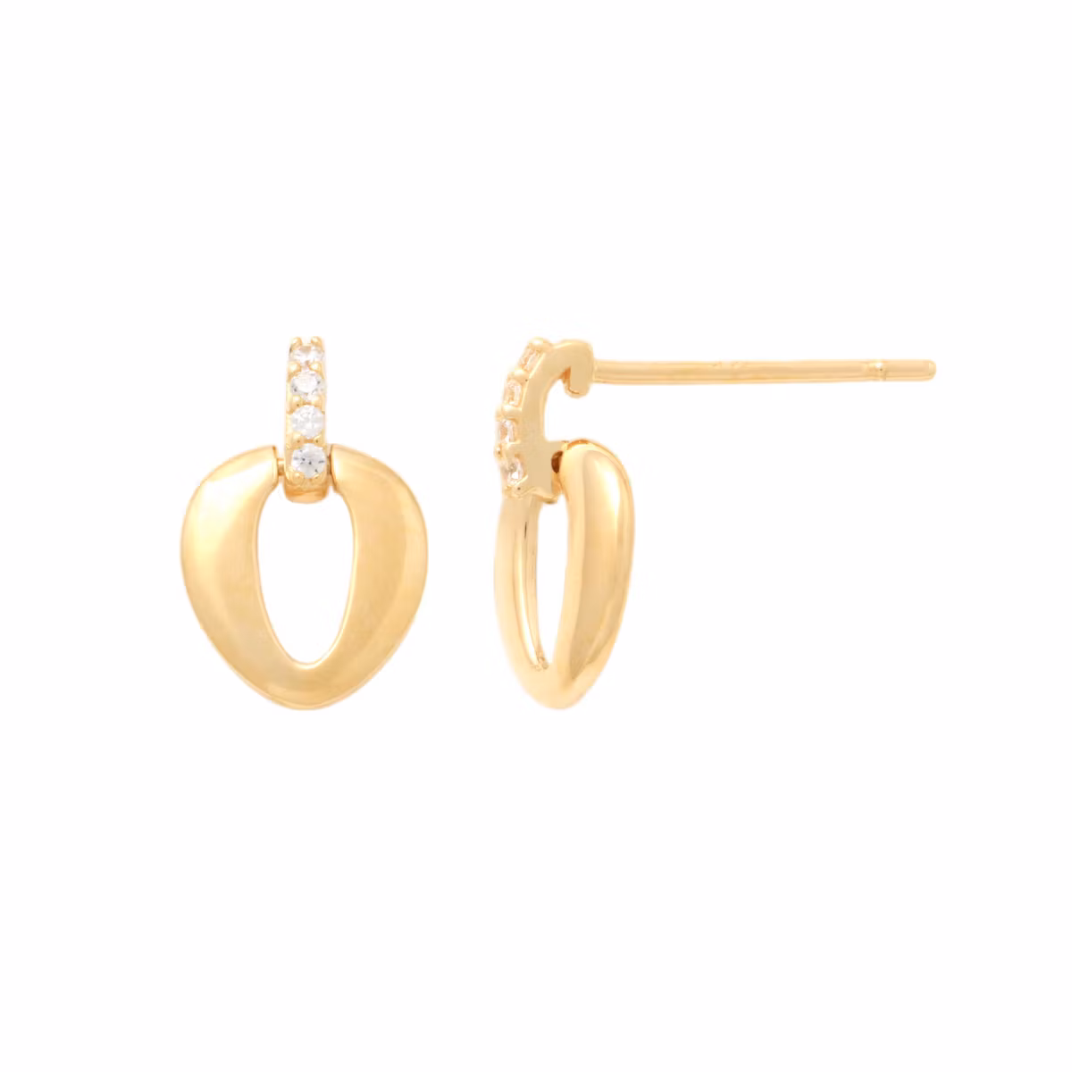 Vackra örhängen med gnistrande cz-stenar i 18K guld. Örhängen i 18K guld av stilren och unik design som passar för alla tillfällen. Unna dig själv eller någon annan ett vackert och trendigt smycke i guld. Örhänget levereras i en vacker smyckesask. Asken är perfekt för trygg förvaring eller om du ska ge bort smycket i gåva.