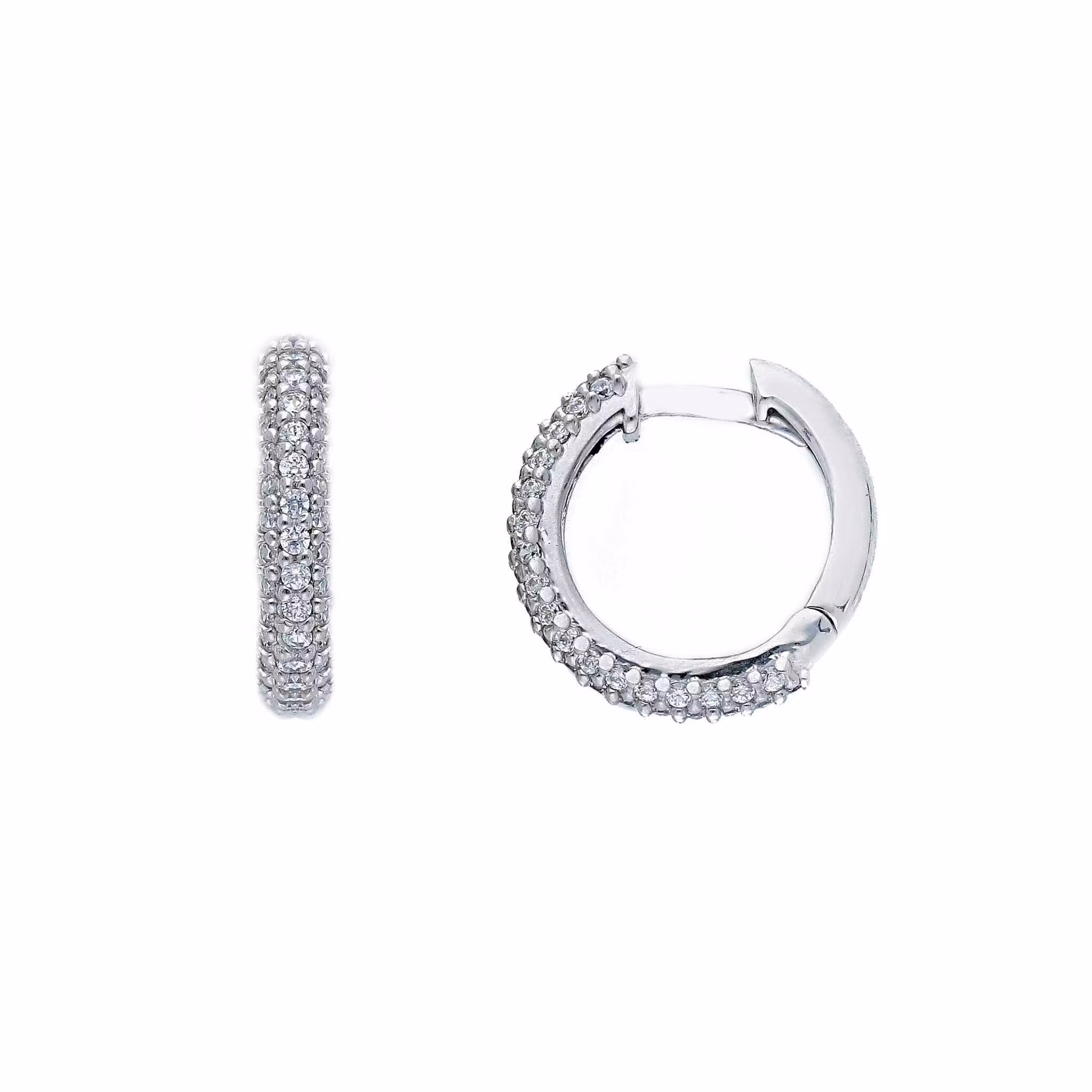 Vackra klickcreoler med gnistrande cz-stenar i återvunnet 9 karats vitguld. Italiensk och trendig design som passar för alla tillfällen. Örhängena levereras i en vacker smyckesask, perfekt för förvaring eller om du ska ge bort smycket i gåva.