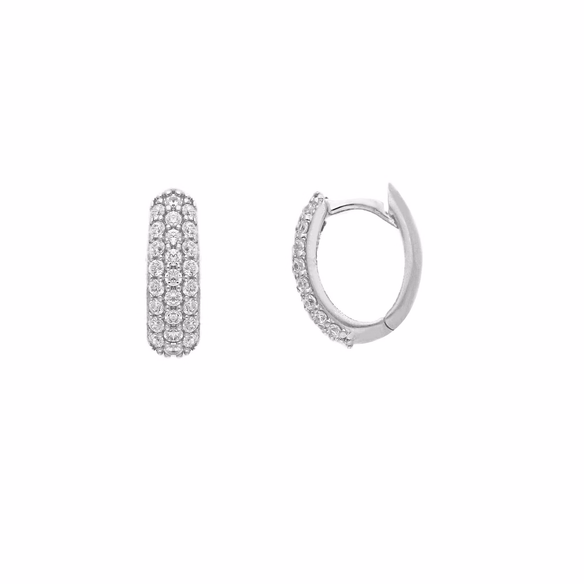 Vackra klickcreoler med gnistrande cz-stenar i återvunnet 9 karats vitguld. Italiensk och trendig design som passar för alla tillfällen. Örhängena levereras i en vacker smyckesask, perfekt för förvaring eller om du ska ge bort smycket i gåva.