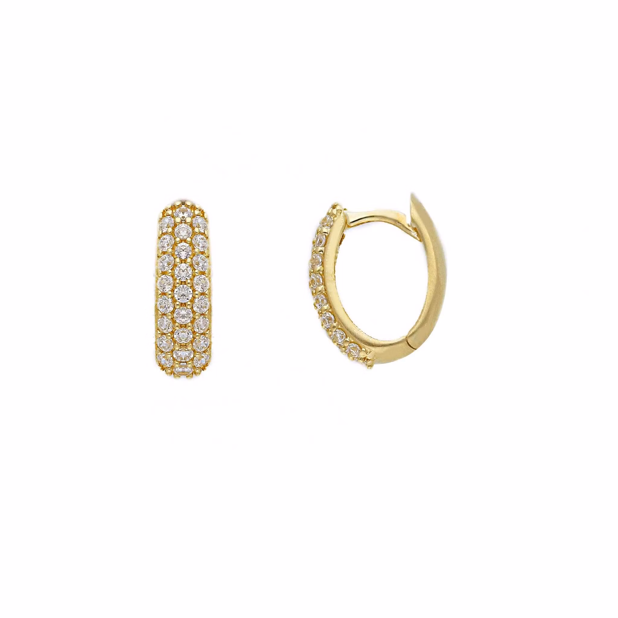 Vackra klickcreoler med gnistrande cz-stenar i återvunnet 9 karats guld. Italiensk och trendig design som passar för alla tillfällen. Örhängena levereras i en vacker smyckesask, perfekt för förvaring eller om du ska ge bort smycket i gåva.