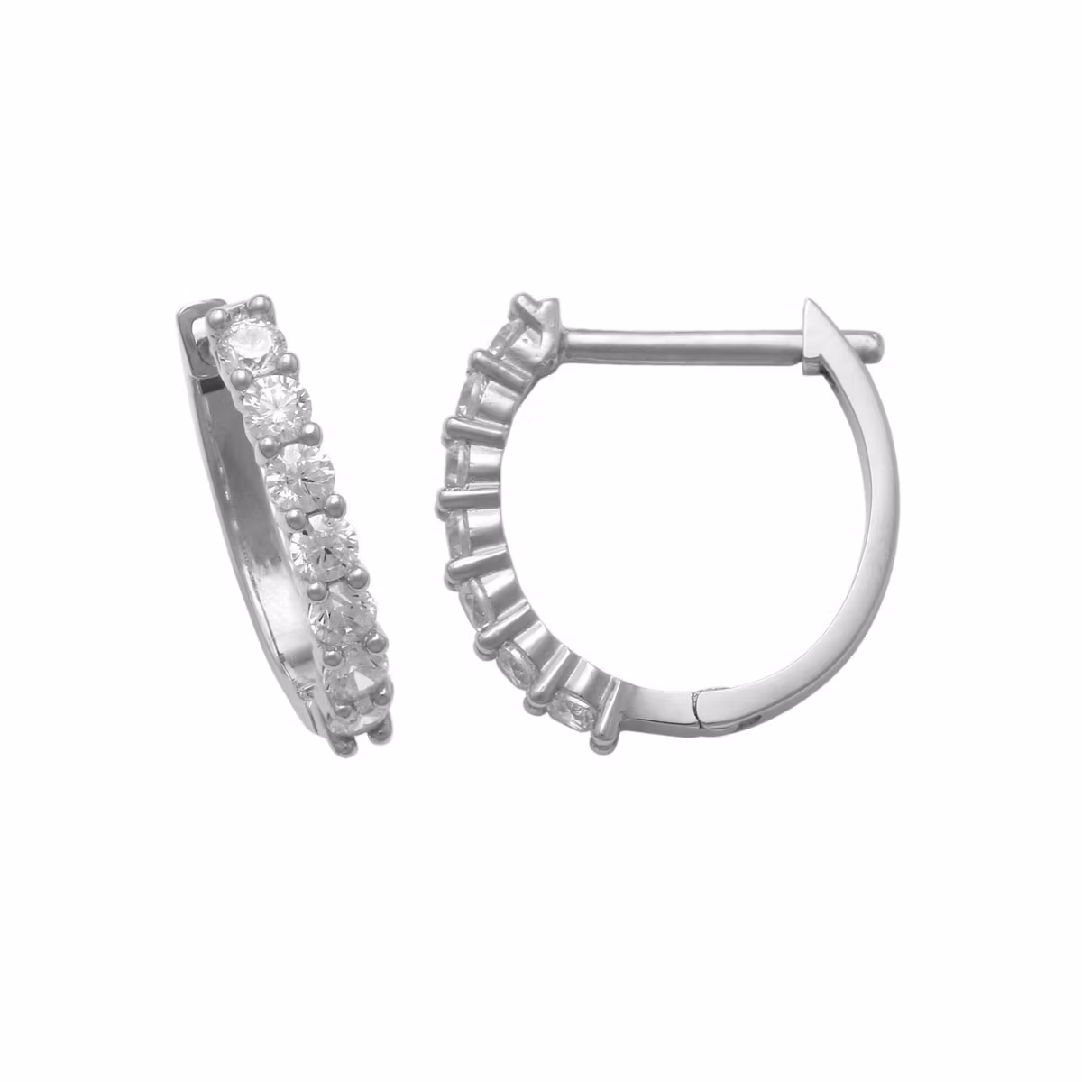 Vackra creoler i återvunnet 18 karats vitguld med gnistrande cz-stenar. Örhängen i 18k guld av stilren och unik design som passar för alla tillfällen. Unna dig själv eller någon annan ett par vackra och trendiga örhängen i guld. Creolerna levereras i en vacker smyckesask. Asken är perfekt för trygg förvaring eller om du ska ge bort smycket i gåva.