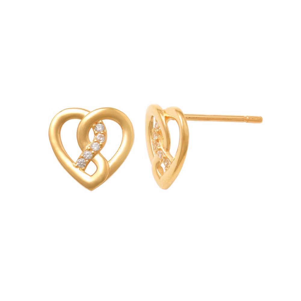 Vackra guldörhängen i form av ett hjärta med gnistrande cz-stenar i 18K guld. Dessa trendiga örhängen passar både till vardags som till fest