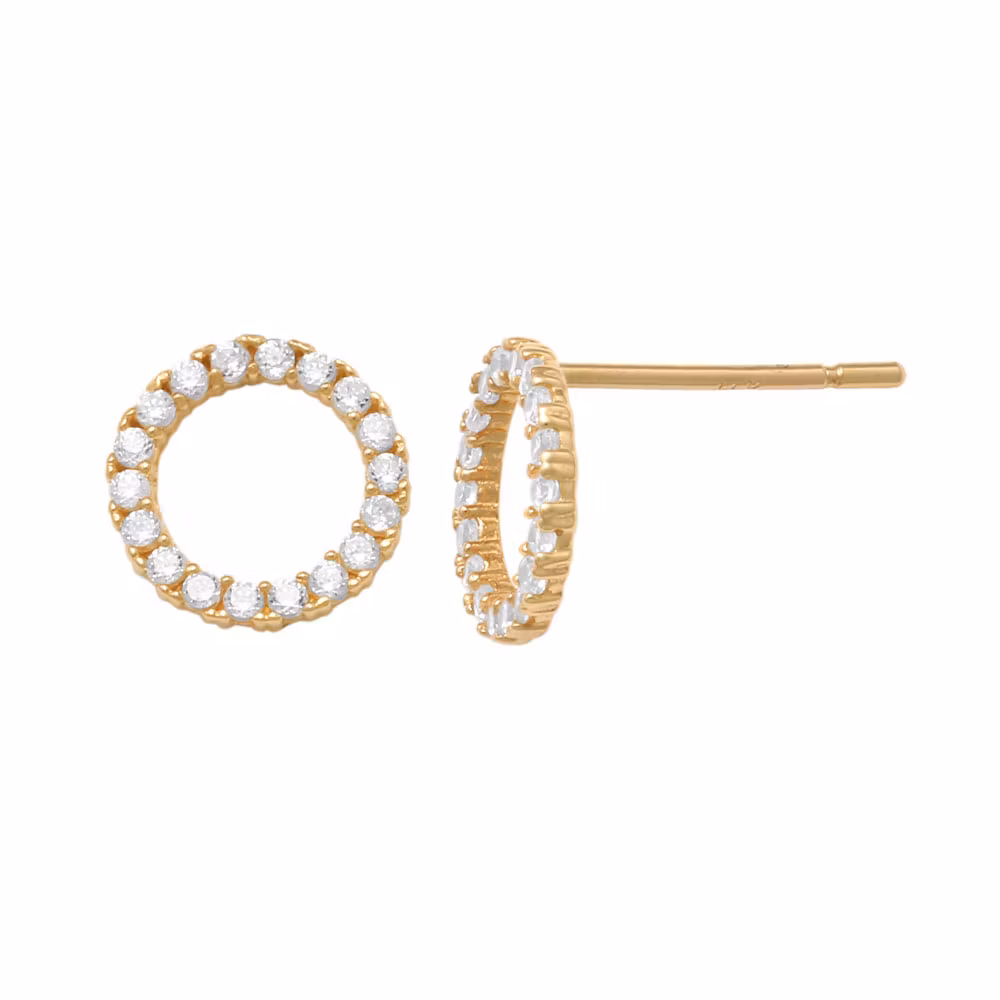 Vackra guldörhängen i form av en cirkel med gnistrande cz-stenar i 18K guld. Dessa trendiga örhängen passar både till vardags som till fest