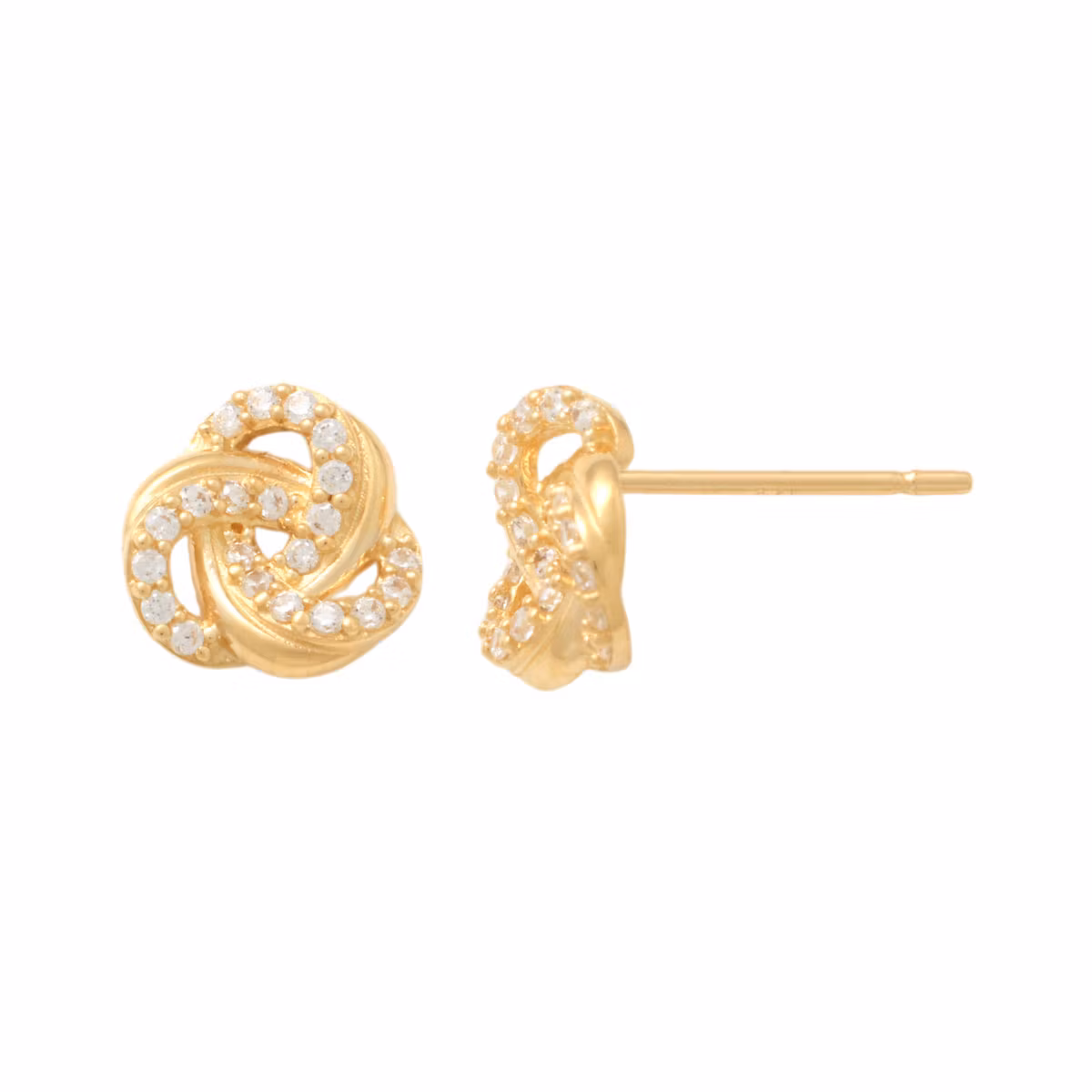 Vackra knutörhängen fyllda av gnistrande cz-stenar i 18K guld.
