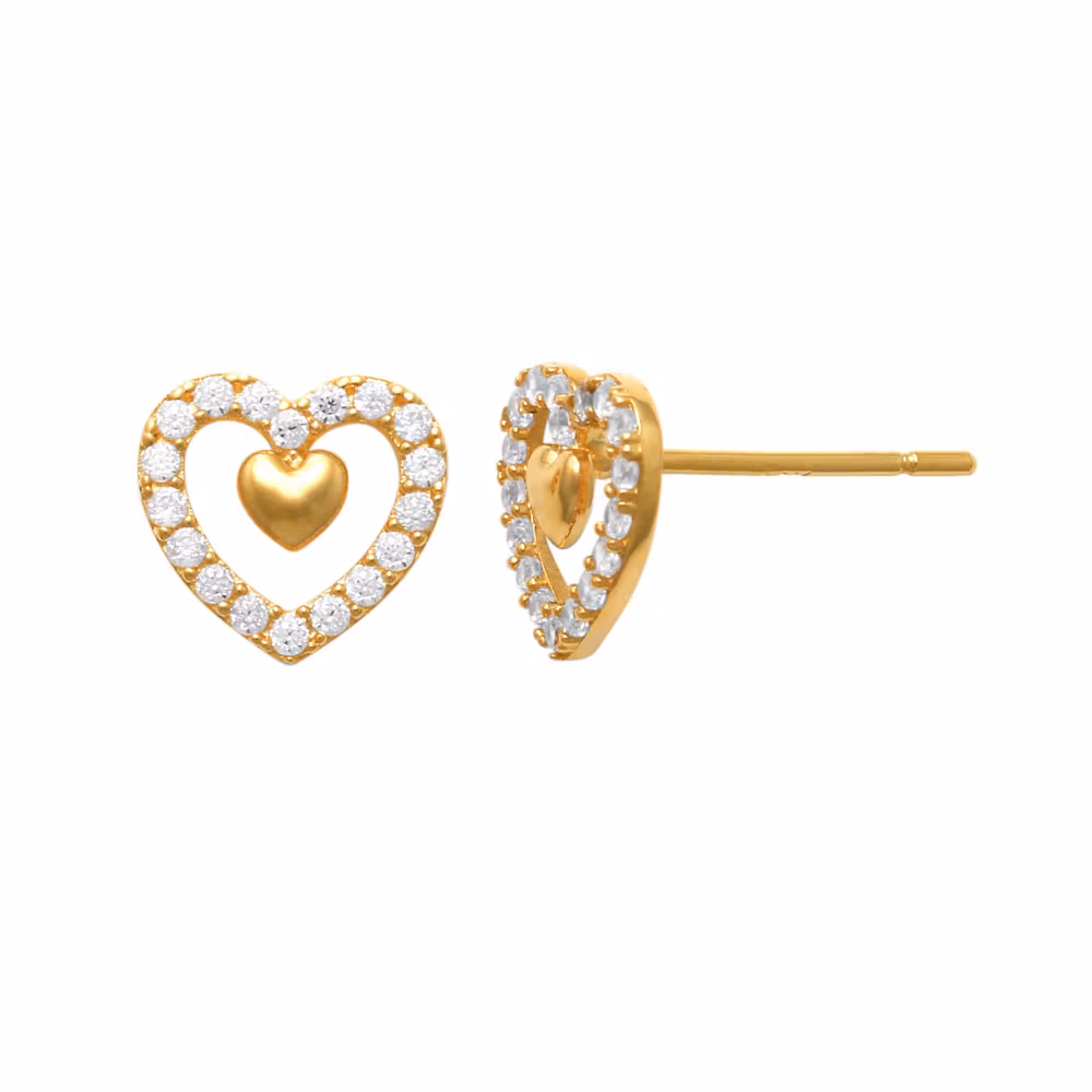 Vackra guldörhängen i form av ett hjärta med gnistrande cz-stenar i 18K guld. Dessa trendiga örhängen passar både till vardags som till fest.