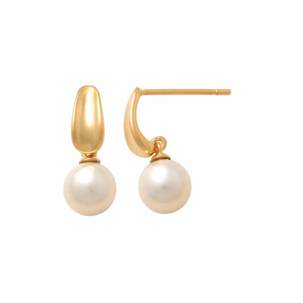 Vackra guldörhängen med sötvattenpärla i 18K guld. Dessa trendiga örhängen passar både till vardags som till fest.