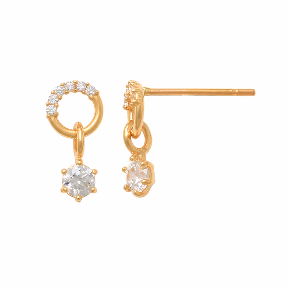 Vackra guldörhängen med gnistrande cz-stenar i 18K guld. Dessa trendiga örhängen passar både till vardags som till fest.