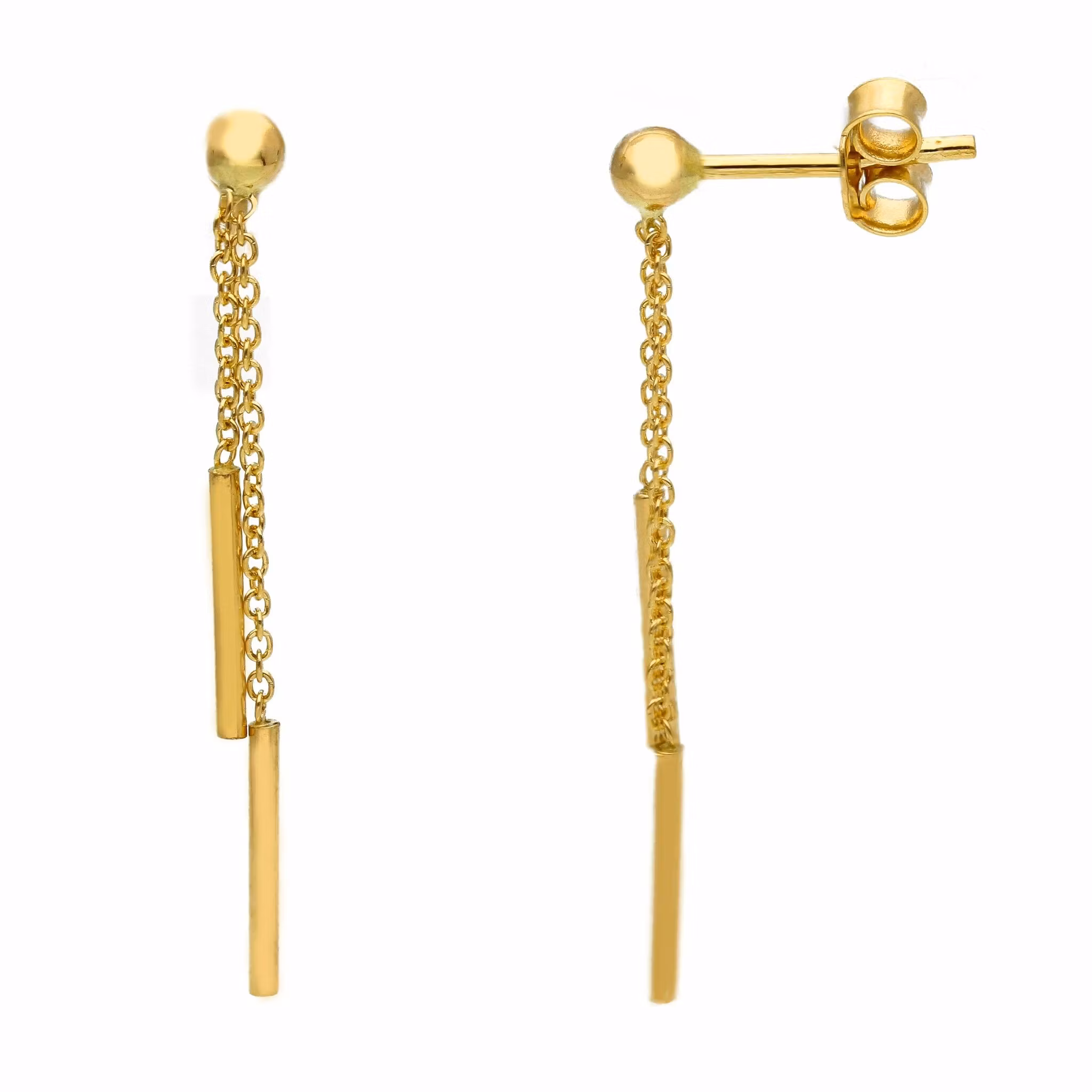 Coola hängande örhängen med kedja och stav i återvunnet 18 karats guld. Örhängen av italiensk och trendig design som passar för alla tillfällen. Att bära ett par stilrena örhängen i guld är alltid ett säkert kort som lyfter din outfit. Örhängena levereras i en vacker smyckesask, perfekt för förvaring eller om du ska ge bort smycket i gåva.