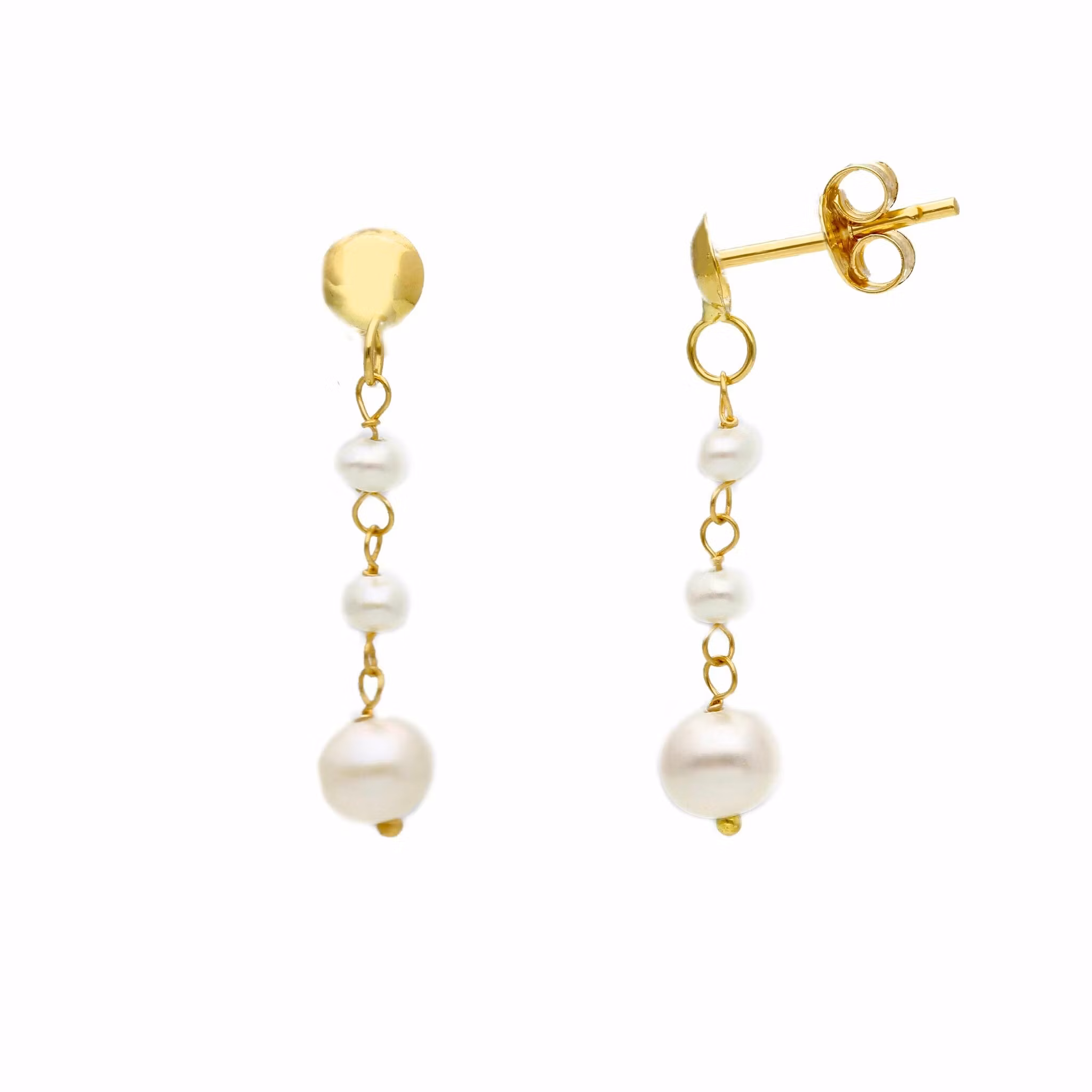 Coola hängande örhängen med sötvattenpärlor i återvunnet 18 karats guld. Örhängen av italiensk och trendig design som passar för alla tillfällen. Att bära ett par stilrena örhängen i guld är alltid ett säkert kort som lyfter din outfit. Örhängena levereras i en vacker smyckesask, perfekt för förvaring eller om du ska ge bort smycket i gåva.