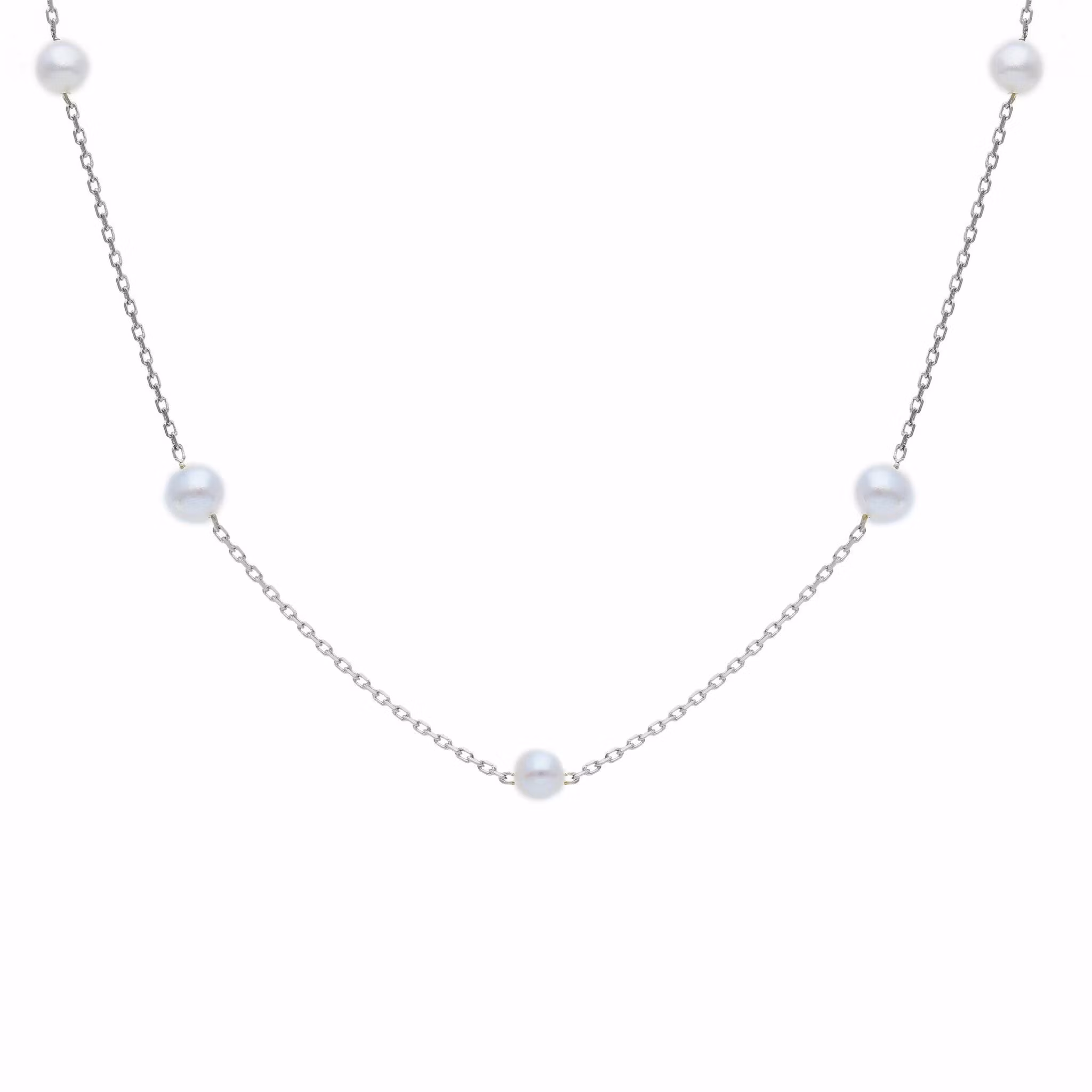 Vackert halsband i återvunnet 18K vitguld med sötvattenpärlor. Halsband av stilren design som passar för alla tillfällen. Smycket levereras i en smyckesask som är perfekt för förvaring eller om du ska ge bort smycket i gåva.