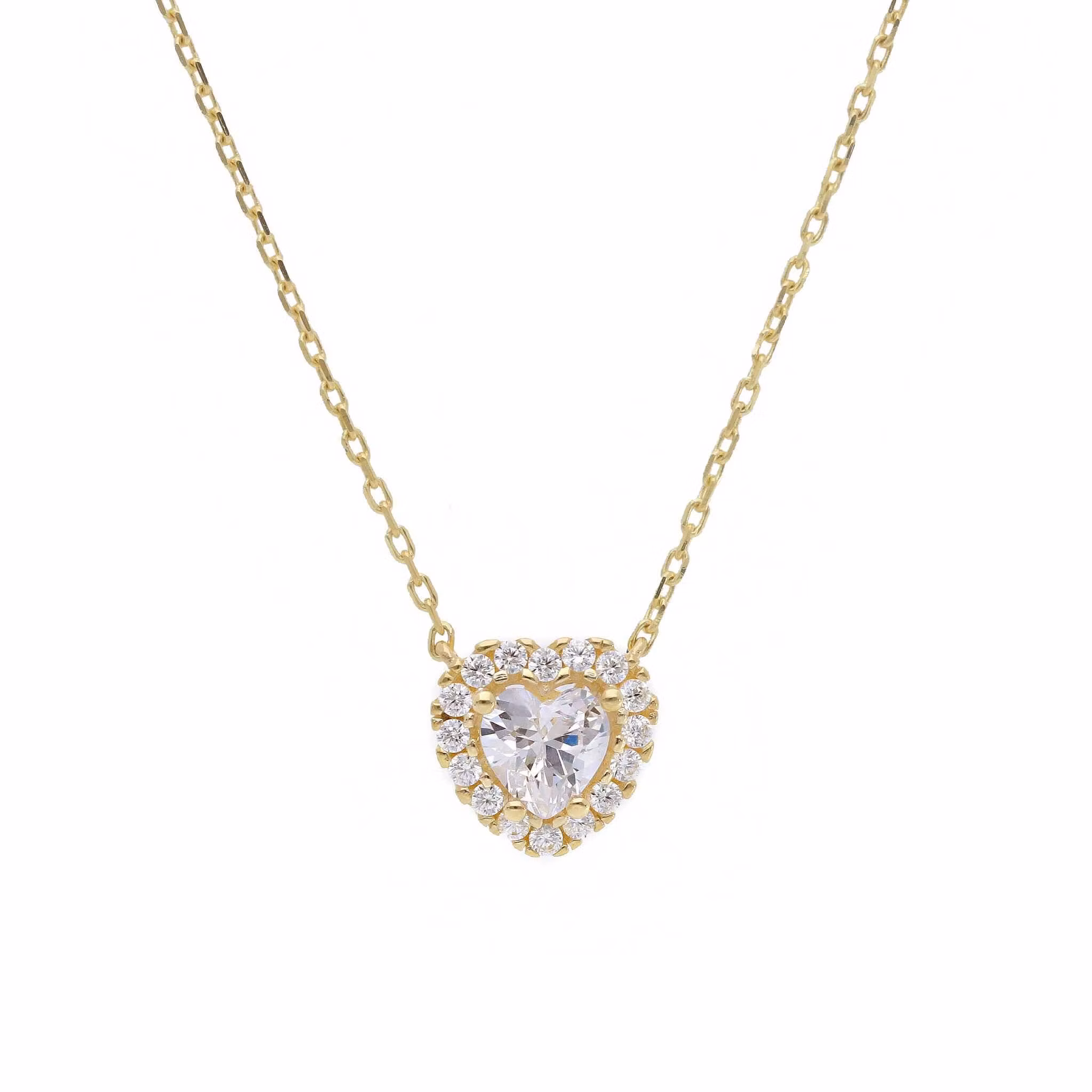 Vackert hjärthalsband med gnistrande cz-stenar i återvunnet 9 karats guld. Italiensk och trendig design som passar för alla tillfällen. Hänget levereras i en vacker smyckesask, perfekt för förvaring eller om du ska ge bort smycket i gåva.