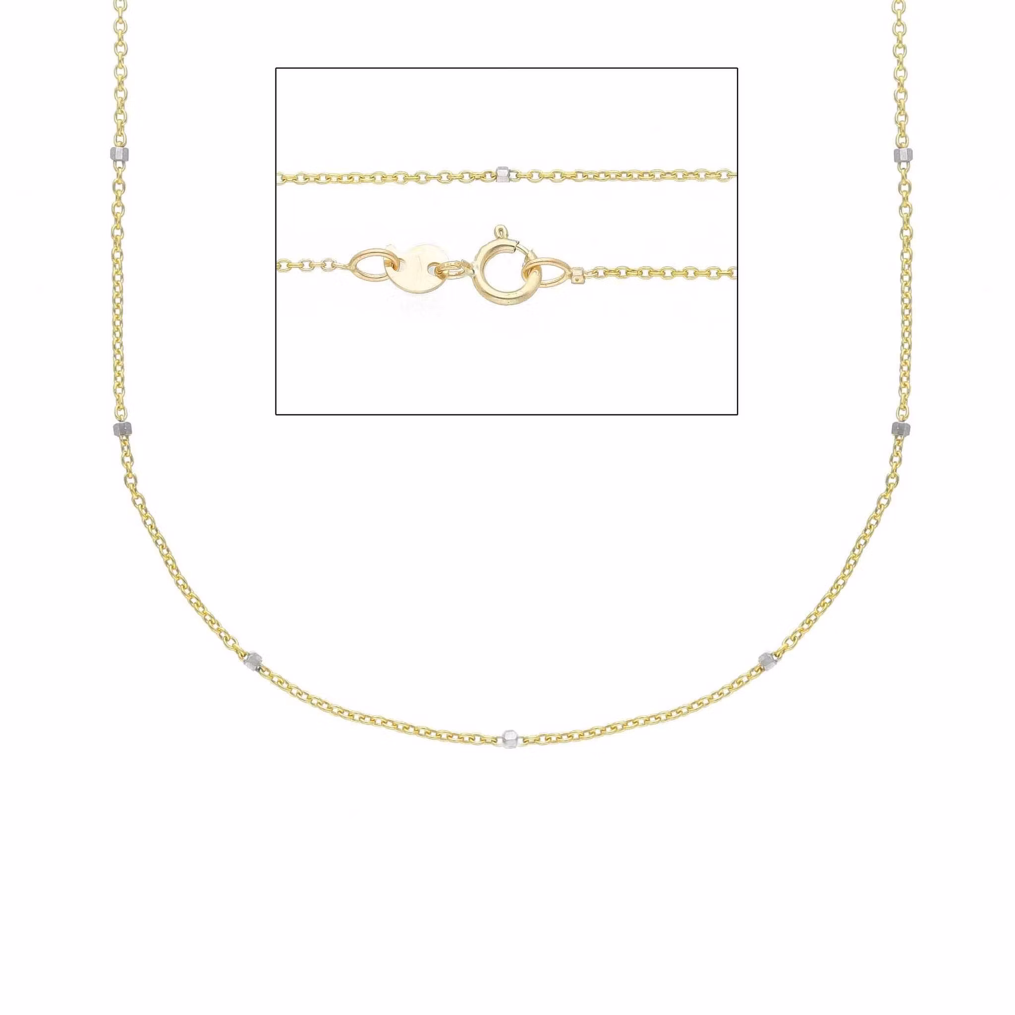 Snygg rundankarlänk i återvunnet 9 karats guld med små kuber i 9 karats vitguld. Kedja av italiensk och trendig design som passar för alla tillfällen. Halsbandet levereras i en vacker smyckesask, perfekt för förvaring eller om du ska ge bort smycket i gåva.