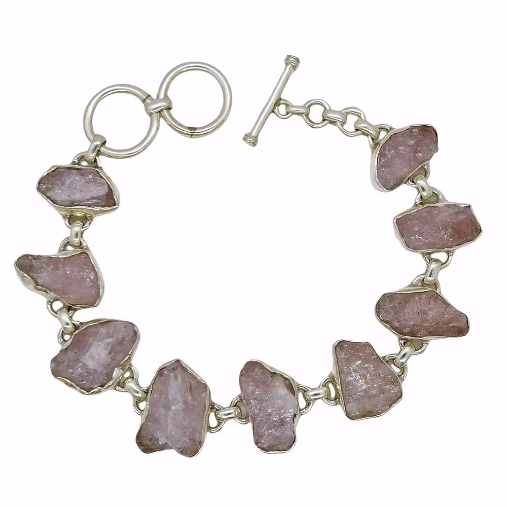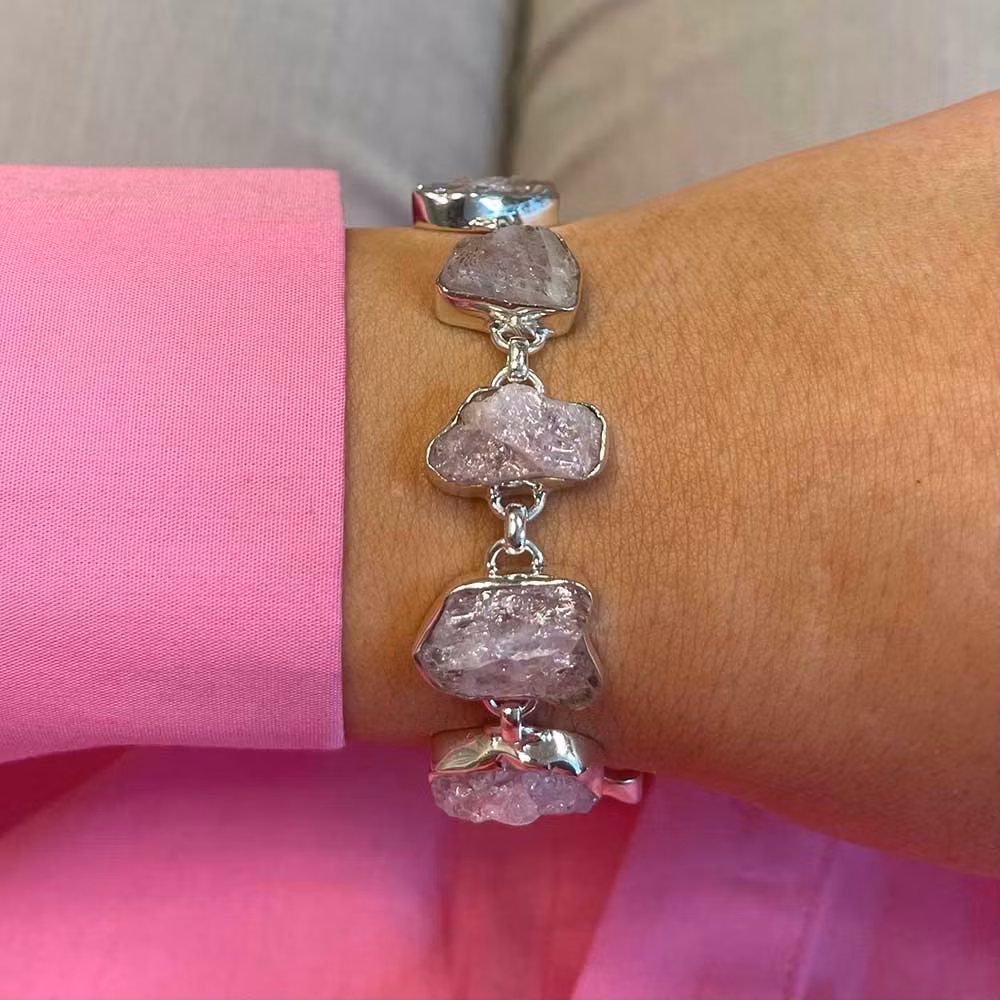 Vackert armband i 925 silver med varsamt infattade råa Morganite ädelstenar. Läckert armband av stilren och unik design som passar för alla tillfällen.