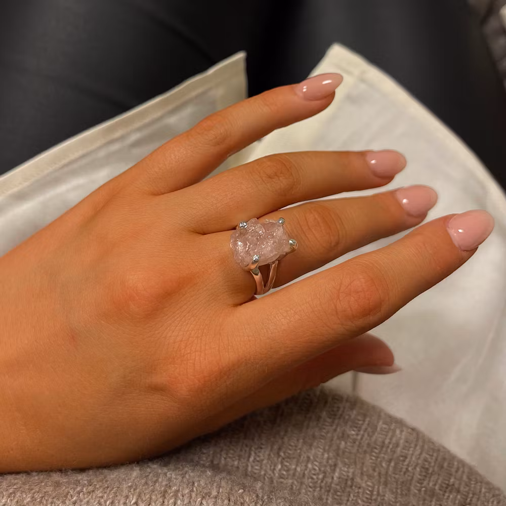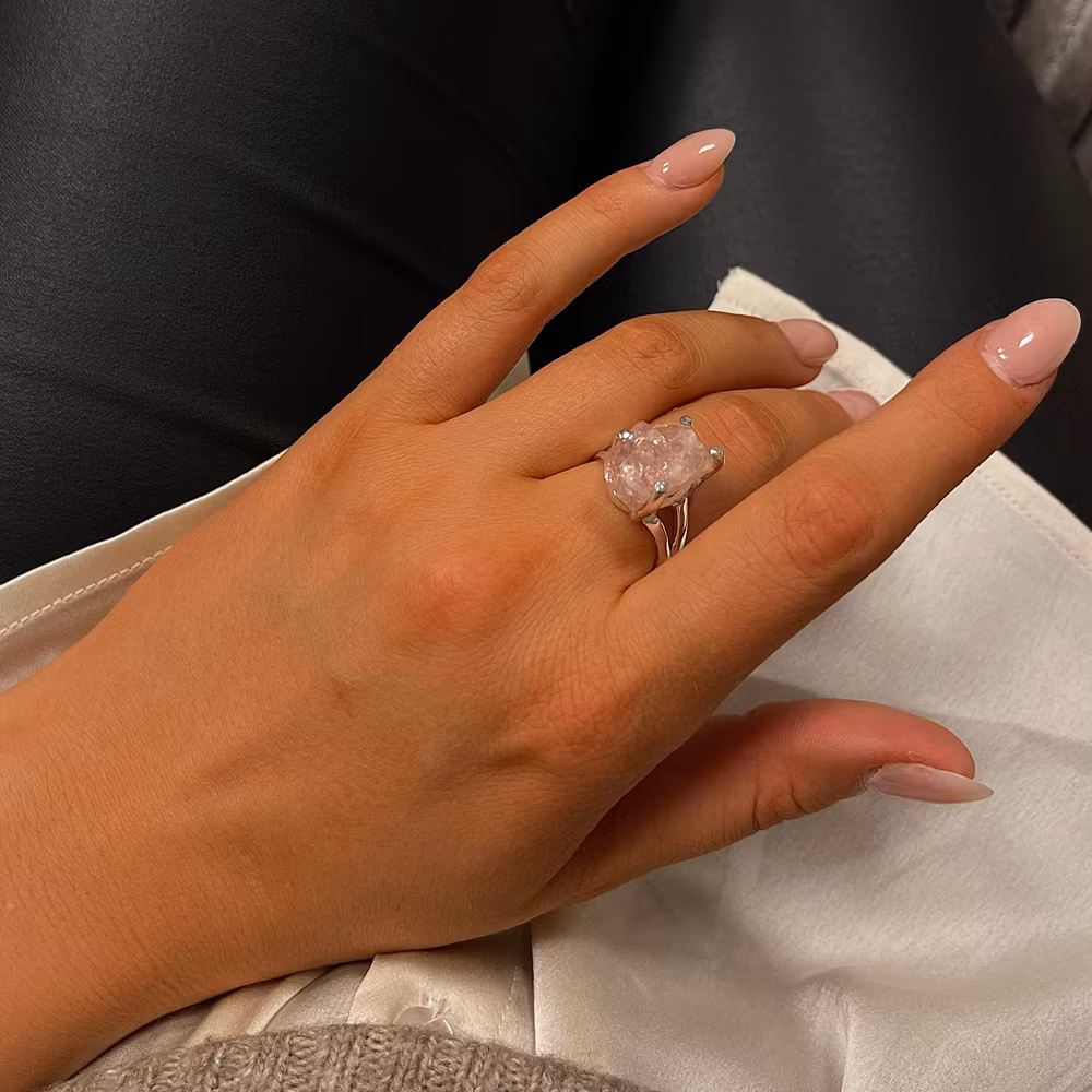 Vacker ring i 925 silver med en varsamt infattad rå Morganite ädelsten. Läcker ring av stilren och unik design som passar för alla tillfällen!