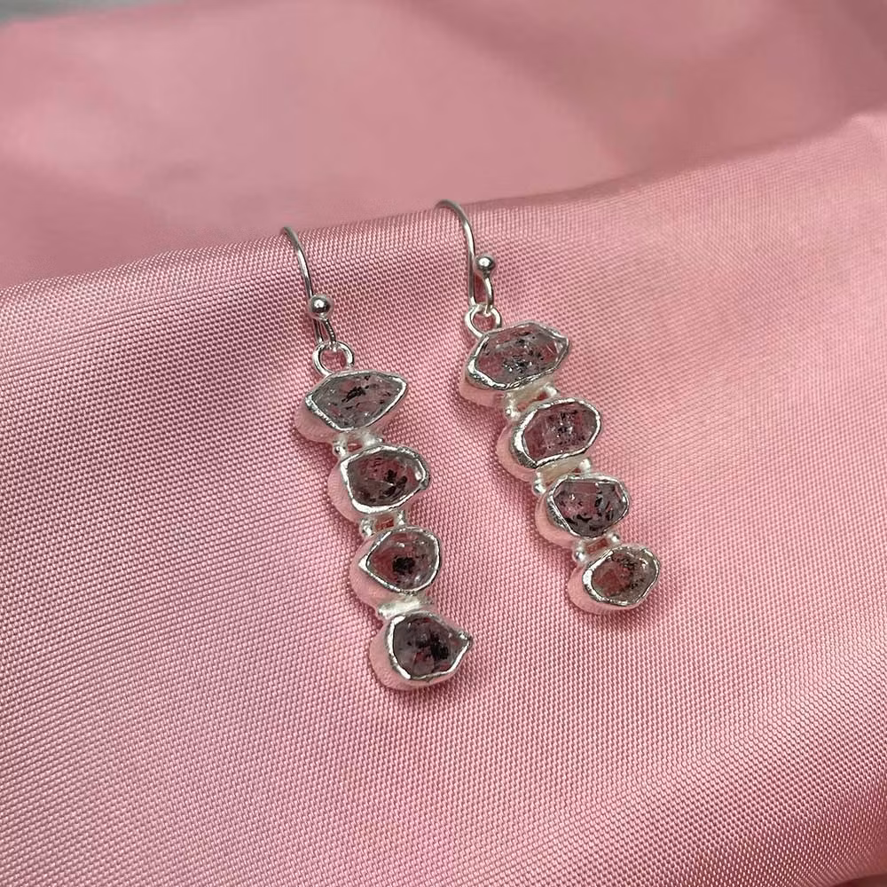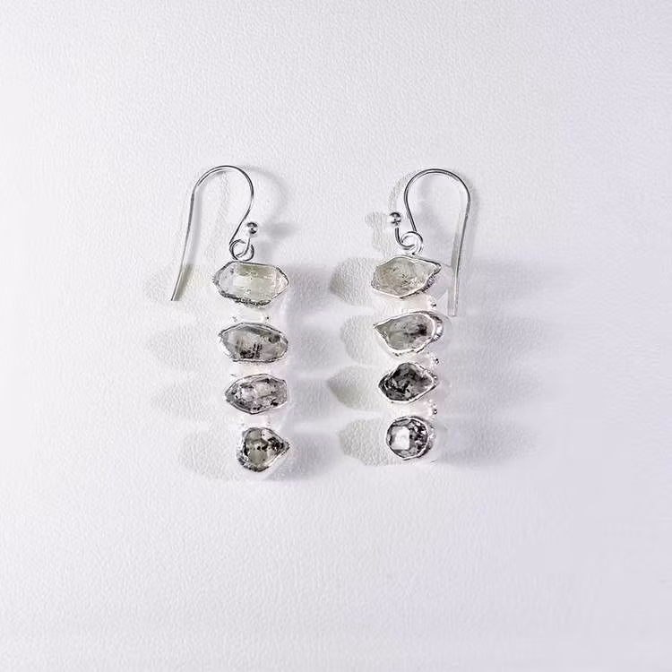 Vackra hängande örhängen i 925 silver med fyra varsamt infattade råa Herkimer ädelstenar. Örhängen av stilren och unik design som passar för alla tillfällen!