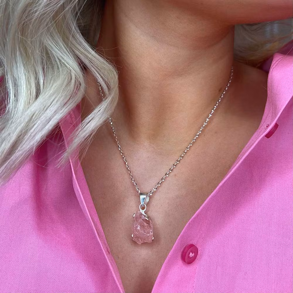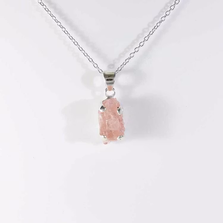 Vackert halsband i 925 silver med en varsamt infattad rå Morganite ädelsten. Halsband av stilren och unik design som passar för alla tillfällen.
