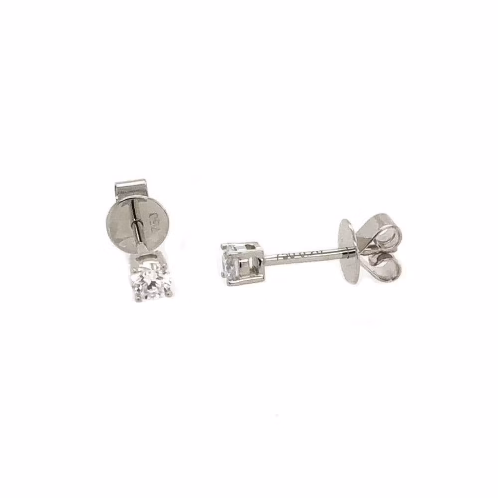 Ljuvliga solitärörhängen med fyra klor i 18 karats vitguld. Vackra örhängen på stift med två gnistrande diamanter i 0,1 ct per örhänge.
