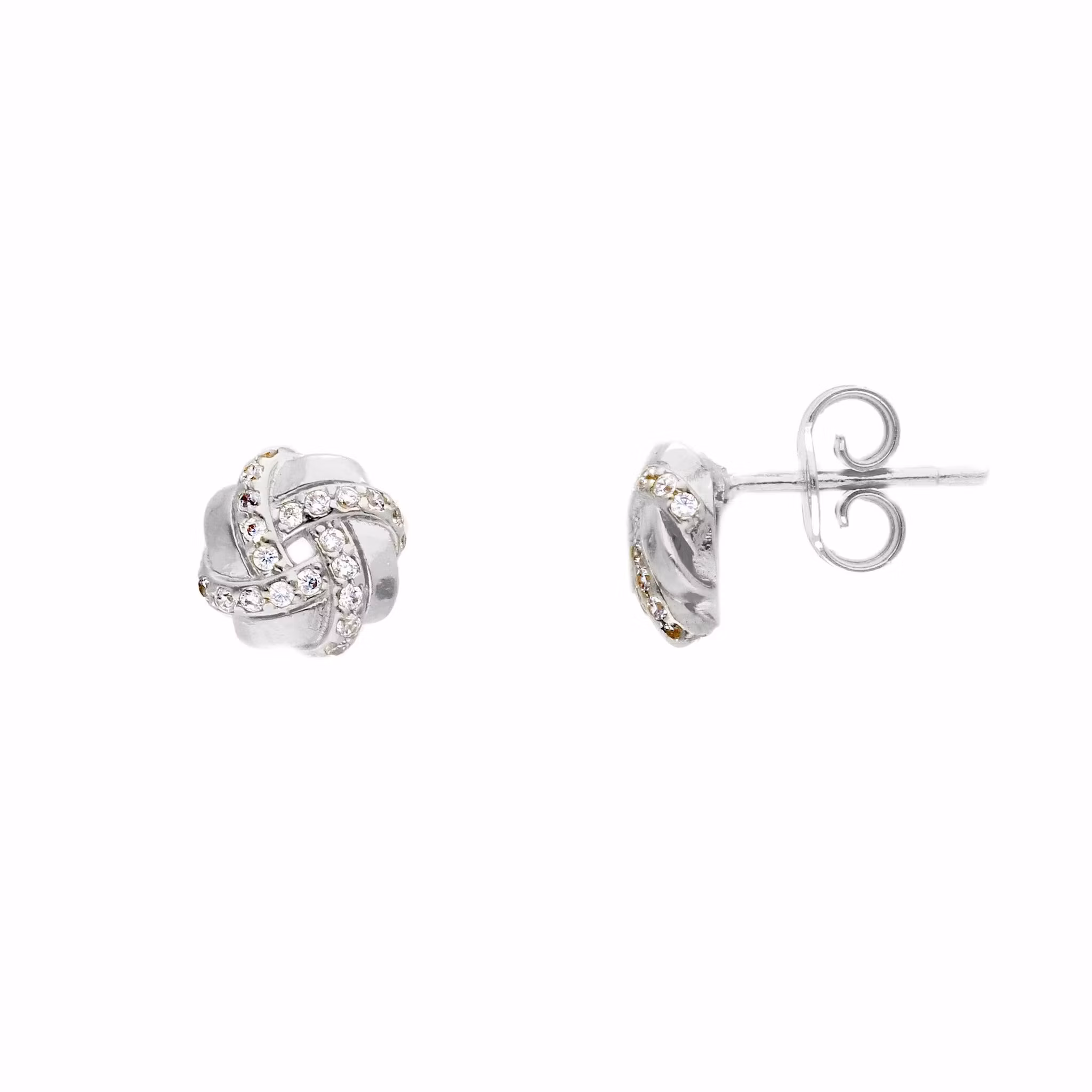 Coola fasta knutörhängen i återvunnet 18 karats vitguld. Örhängen av italiensk och trendig design som passar för alla tillfällen. Att bära ett par stilrena knutörhängen i guld är alltid ett säkert kort. Örhängena levereras i en vacker smyckesask, perfekt för förvaring eller om du ska ge bort smycket i gåva.