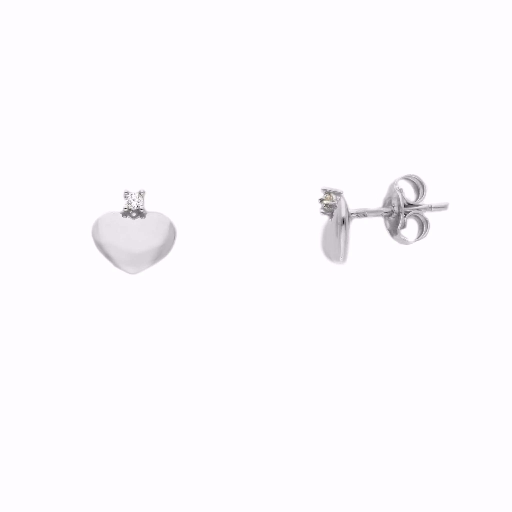 Fasta örhängen i form av ett hjärta med cz-stenar i återvunnet 18 karats vitguld. Örhängen av italiensk och trendig design som passar för alla tillfällen. Att bära ett par stilrena örhängen i guld är alltid ett säkert kort. Örhängena levereras i en vacker smyckesask, perfekt för förvaring eller om du ska ge bort smycket i gåva.