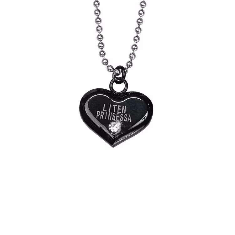 Vackert och gulligt halsband i rostfritt svartfärgat stål. Ett hjärta med texten "Liten prinsessa".
