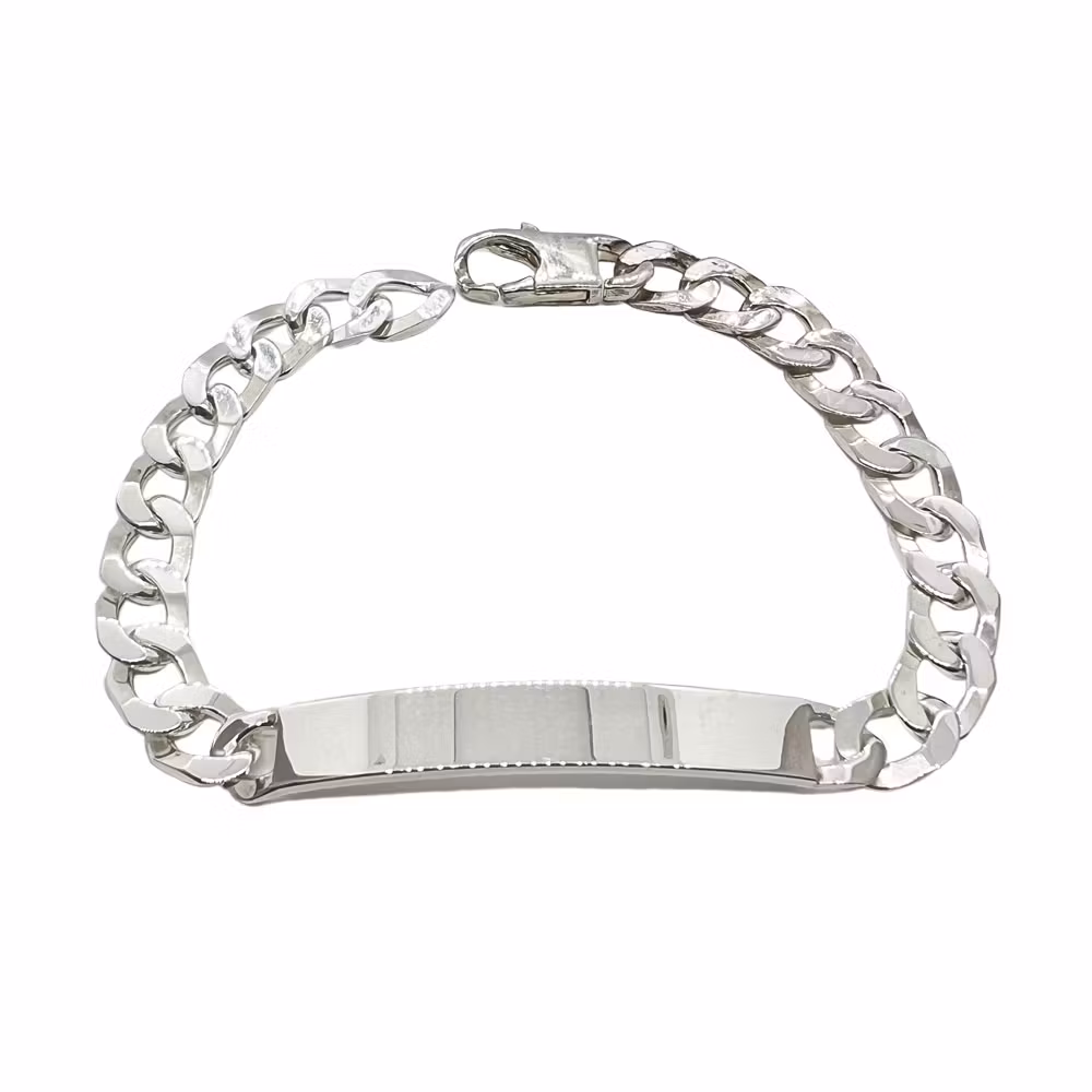 Stilren pansarlänk med gravyrplatta i 925 återvunnet silver med fransk karbinhake. Armband av stilren, modern och italiensk design som passar för alla tillfällen, till vardags och fest. Armbandet levereras i en vacker smyckesask. Asken är perfekt för trygg förvaring eller om du ska ge bort smycket i gåva.