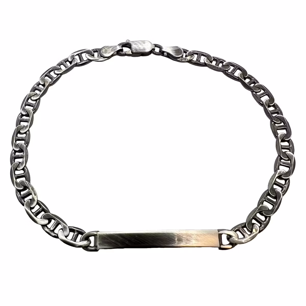 Stilrent armband med marinalänkar och gravyrplatta i återvunnet 925 oxiderat silver. Armband av klassisk och italiensk design som passar för alla tillfällen. Smycket levereras i en snygg smyckesask. Asken är perfekt för trygg förvaring eller om du ska ge bort smycket i gåva. Mät gärna din längd som passar dig bäst innan du lägger din beställning. Den vanligaste längden är 19, 20 och 21 cm. Din perfekta längd beror förstås på omkretsen runt din handled och hur tight du vill att ditt armband ska sitta.