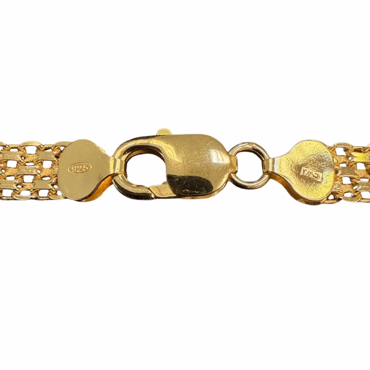 Vacker X-länk i förgyllt återvunnet 925 silver. Armband av stilren, modern och italiensk design som passar för alla tillfällen, till vardags och fest. Den perfekta silverkedjan för dig som vill bära ett stilrent smycke. Armbandet levereras i en snygg smyckesask. Asken är perfekt för trygg förvaring eller om du ska ge bort smycket i gåva.